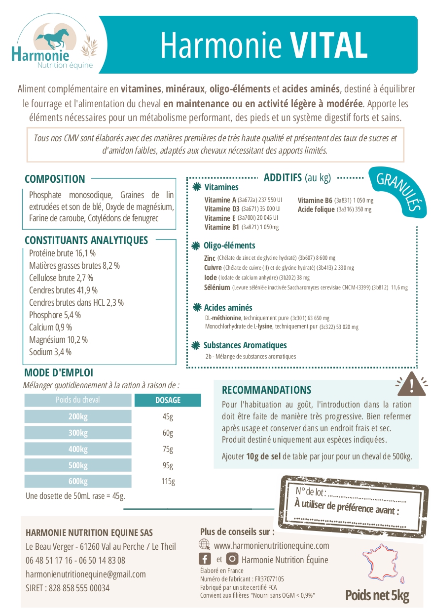 Phosphate monosodique, graines de lin extrudées, oxyde de magnésium, son de blé, farine de caroube, cotylédon de fenugrec